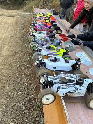 決勝は人数が少ないですが5台決勝。Aメインから3−2−2−5で行うことに。計測、アナウンス、給油を一人で3役こなすことになりました。(5台決勝、給油2名)